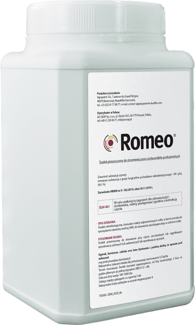 Romeo to nowoczesny biofungicyd oparty na substancji aktywnej cerevisane®, który działa jak „szczepionka” dla roślin. Aktywuje ich naturalne mechanizmy obronne, chroniąc uprawy przed chorobami grzybowymi, zanim wystąpią objawy infekcji. Preparat jest bezpieczny, skuteczny i dopuszczony do stosowania w rolnictwie ekologicznym. Występuje w formie proszku do sporządzania zawiesiny wodnej (formulacja WP) i znajduje zastosowanie w uprawach warzywnych, jagodowych, sadowniczych oraz roślinach ozdobnych.