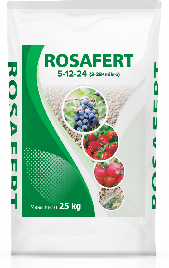 Rosafert 05-12-24 (+3+28+mikro) jest bezchlorkowym, granulowanym nawozem NPK z magnezem, siarką i mikroskładnikami pokarmowymi, przeznaczony do przedsiewnego i pogłównego nawożenia warzyw, drzew i krzewów owocowych, tytoniu, szkółek, roślin ozdobnych, trawników oraz upraw rolniczych.