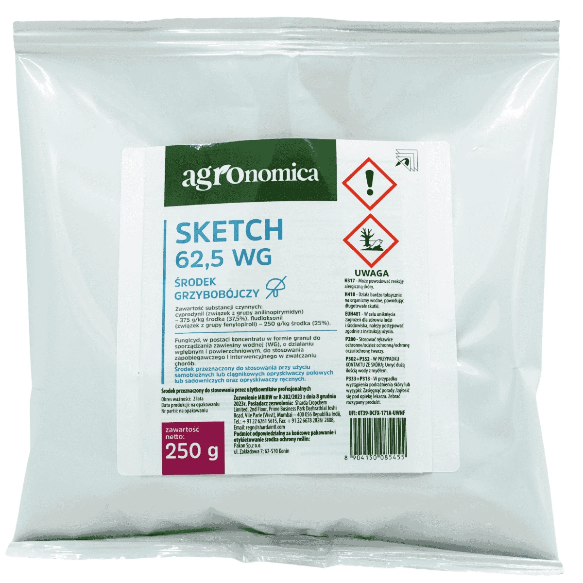 Sketch 62,5 WG to środek grzybobójczy będący koncentratem w formie granul do sporządzania zawiesiny wodnej, przeznaczony do rozcieńczania z wodą. Działa wgłębnie i powierzchniowo. Wykazuje silne działanie zapobiegawcze i interwencyjne w chorobach grzybowych wielu upraw. Hamuje wzrost grzybni, jeśli doszło już do infekcji w roślinie. Zawartość dwóch substancji czynnych z różnych grup chemicznych obniża prawdopodobieństwo powstania odporności u patogenów. W przypadku wielu upraw stosowanie Sketch 62,5 WG w okresie przedzbiorczym pozytywnie wpływa na ich trwałość pozbiorczą, co jest szczególnie ważne w przypadku świeżych warzyw i owoców jagodowych.