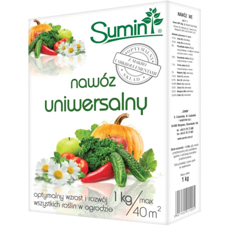 Granulowany nawóz uniwersalny Sumin przeznaczony jest do wszechstronnej pielęgnacji warzyw, owoców, kwiatów, krzewów ozdobnych oraz trawnika.