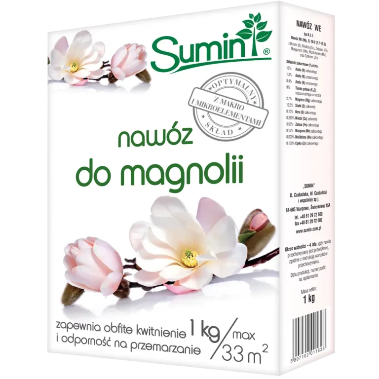 Nawóz do magnolii to specjalistyczny preparat granulowany, który wspiera obfite kwitnienie, soczystą zieleń liści oraz zwiększa odporność roślin na mróz i niekorzystne warunki atmosferyczne.