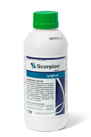 Scorpion 325 SC to wysokiej jakości fungicyd w formie stężonej zawiesiny (SC), przeznaczony do stosowania zapobiegawczego oraz interwencyjnego w ochronie roślin przed chorobami grzybowymi. Preparat wykazuje działanie zarówno wgłębne, jak i układowe — szybko penetruje powierzchnię rośliny i jest transportowany w tkankach, co pozwala skutecznie zwalczać infekcje już po ich wystąpieniu.