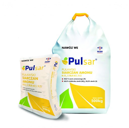 Pulsar to nawóz azotowy występujący w postaci białych, szaro-beżowych lub szarych kryształów. Jest produktem sypkim, dobrze rozpuszczalnym w wodzie, co zwiększa jego skuteczność w przypadku bezpośredniej aplikacji na polu. Pulsar zawiera ponadto 24% łatwo dostępnej dla roślin siarki. Pulsar gwarantujemy wysoką jakość. Pulsar produkowany przez Grupę Azoty PUŁAWY jest wyrobem, który spełnia w pełnym zakresie wymagania techniczne załącznika I Rozporządzenia (WE) nr 2003/2003 Parlamentu Europejskiego i Rady z dnia 13 IX 2003 w sprawie nawozów.
