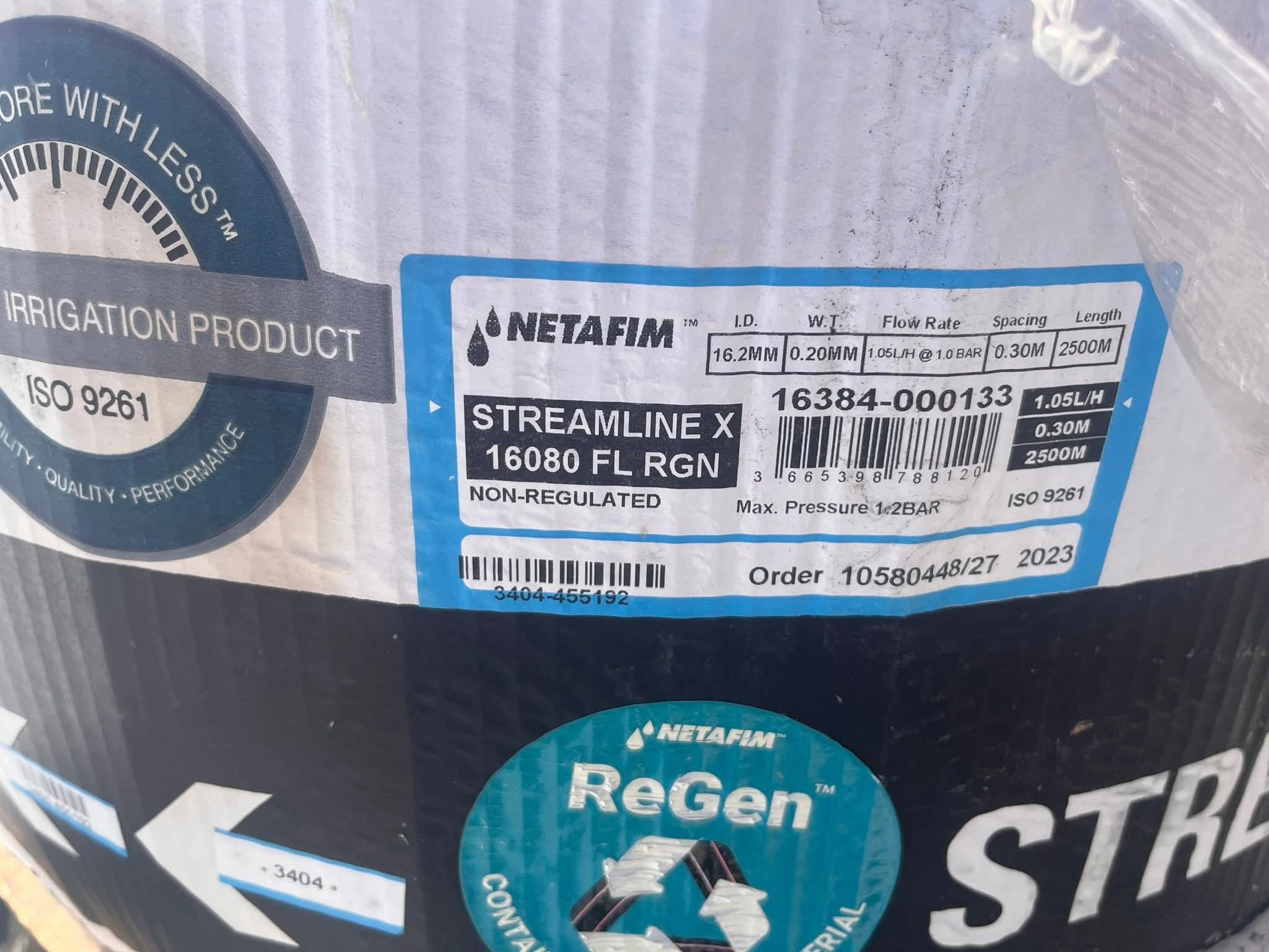 Oryginalna taśma kroplująca Netafim Streamline przeznaczona do profesjonalnych systemów nawadniania kroplowego w uprawach polowych, warzywniczych i sadowniczych.