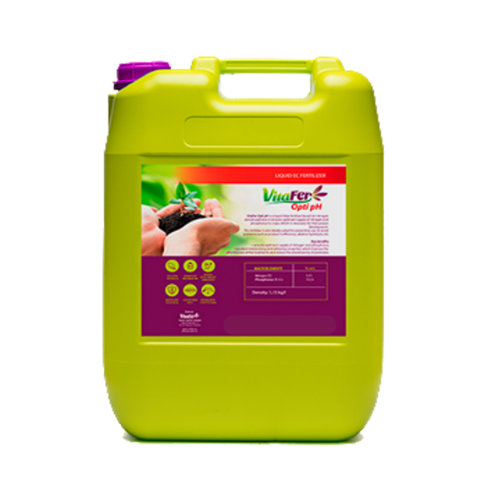VitaFer Opti pH jest płynnym nawozem stosowanym jako srodek zakwaszajacy i bufor, który pozwala poprawic jakosc wody uzywanej do oprysku dolistnego oraz rozwiazac problemy zwiazane z twardoscia wody i wysokim pH. VitaFer Opti pH pozwala na obnizenie pH wody, neutralizuje niektóre rozpuszczone sole, zwieksza dostepnosc składników odzywczych (szczególnie wapnia i magnezu), zapobiega wytracaniu sie i alkalicznej hydrolizie substancji czynnych i zwiazków, takich jak organiczne fosforany, naturalne i syntetyczne pyretroidy i biologiczne srodki owadobójcze (np. Bacillus Thuringiensis). VitaFer Opti pH ma doskonałe własciwosci zwilzajace, powierzchniowo czynne oraz zapobiega pienieniu sie cieczy roboczej, co poprawia penetracje kutikularna i pobór substancji odzywczych przez liscie.