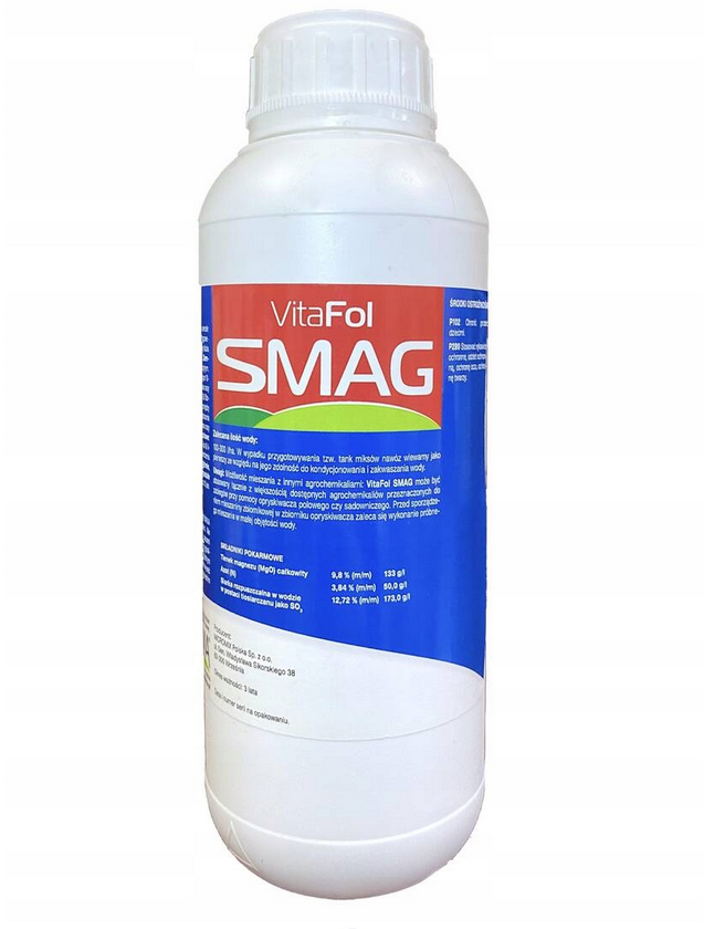 VitaFol SMAG jest to nawóz do stosowania dolistnego w uprawach rolniczych i ogrodniczych. Należy go stosować w trakcie aktywnego wzrostu roślin. Zaleca się jego aplikację w celu wyrównywania niedoborów magnezu i siarki w okresach największej wrażliwości roślin na brak dostępności tego składnika. Wyjątkowo nowoczesny sposób kompleksowania jonów magnezu (Mg) i siarki (S) oraz zdolność nawozu do zakwaszania i kondycjonowania cieczy roboczej w technologii Amix pozwala na optymalne wchłania-nie składników pokarmowych i ich wykorzystanie przez roślinę.